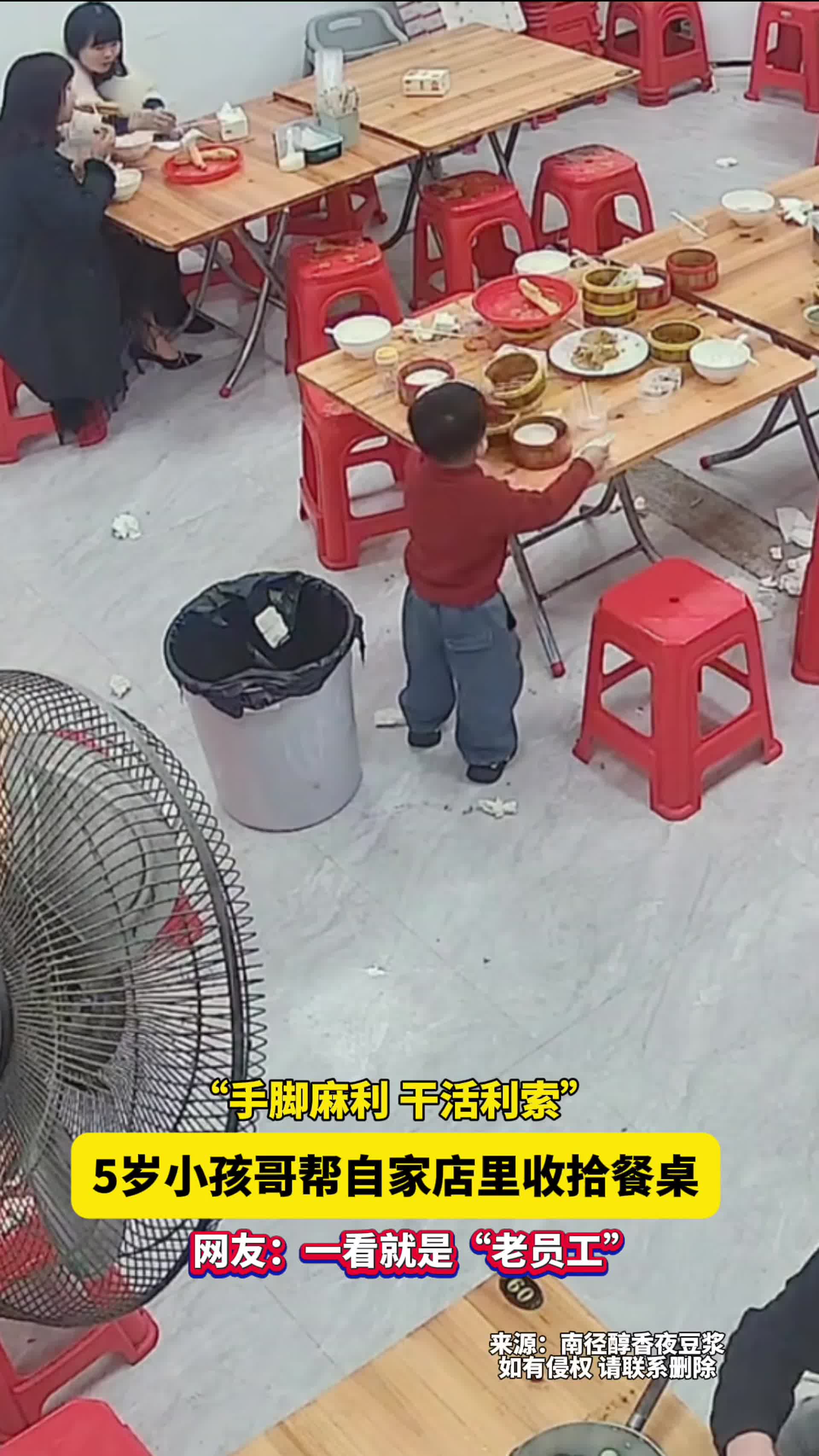 “手脚麻利 干活利索” 5岁小孩哥帮自家店里收拾餐桌!网友:一看就是“老员工”